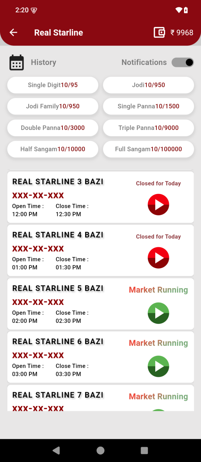 Our online satta game also offers a convenient wallet feature that saves your transaction history and allows instant withdrawals. You can also place bets using your phone with Android and iOS apps or by using an emulator like Bluestacks on your computer.